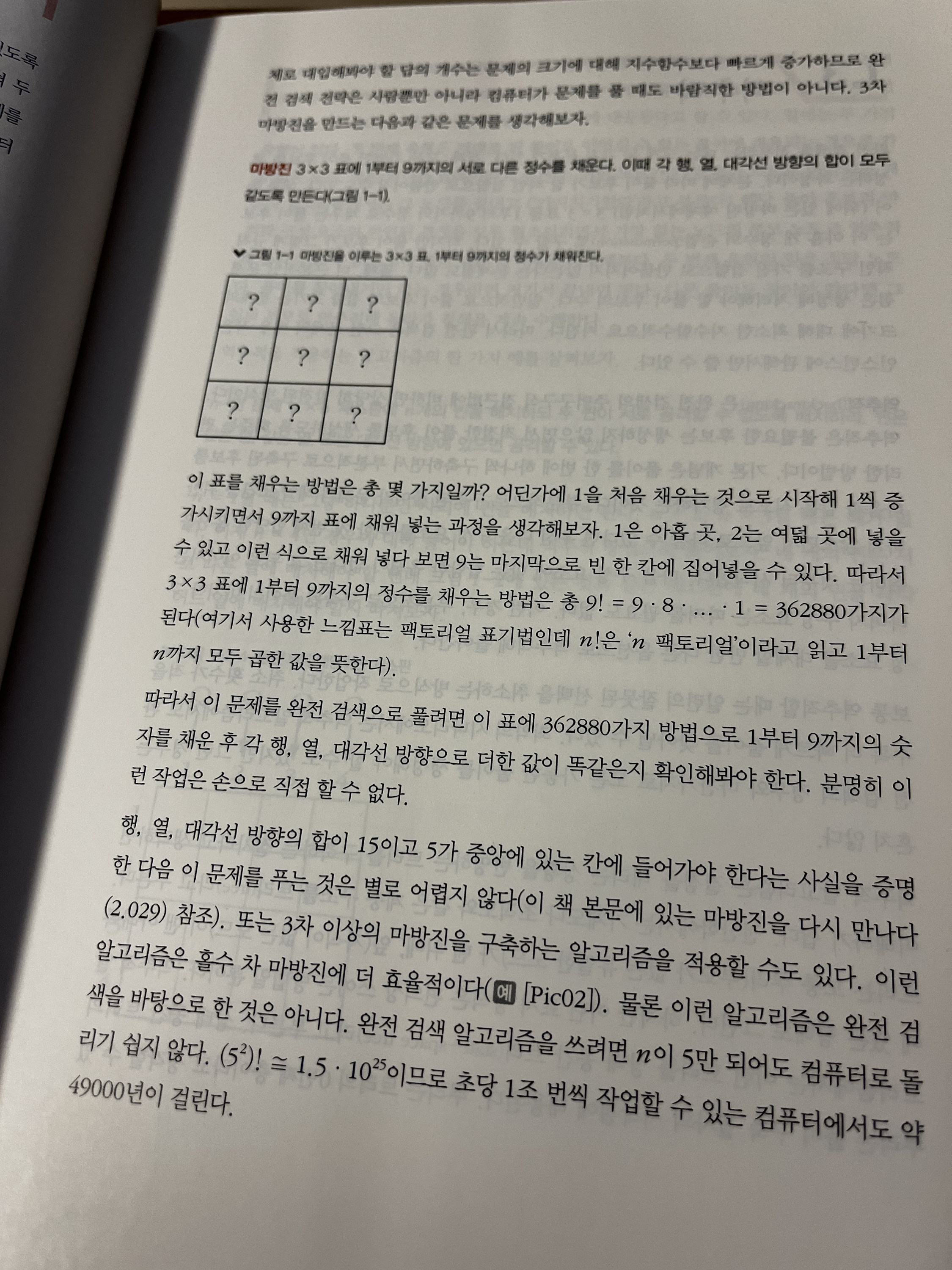 마방진 같은 예시를 보여주면서 완전탐색을 알려주는 것이 흥미로웠다.