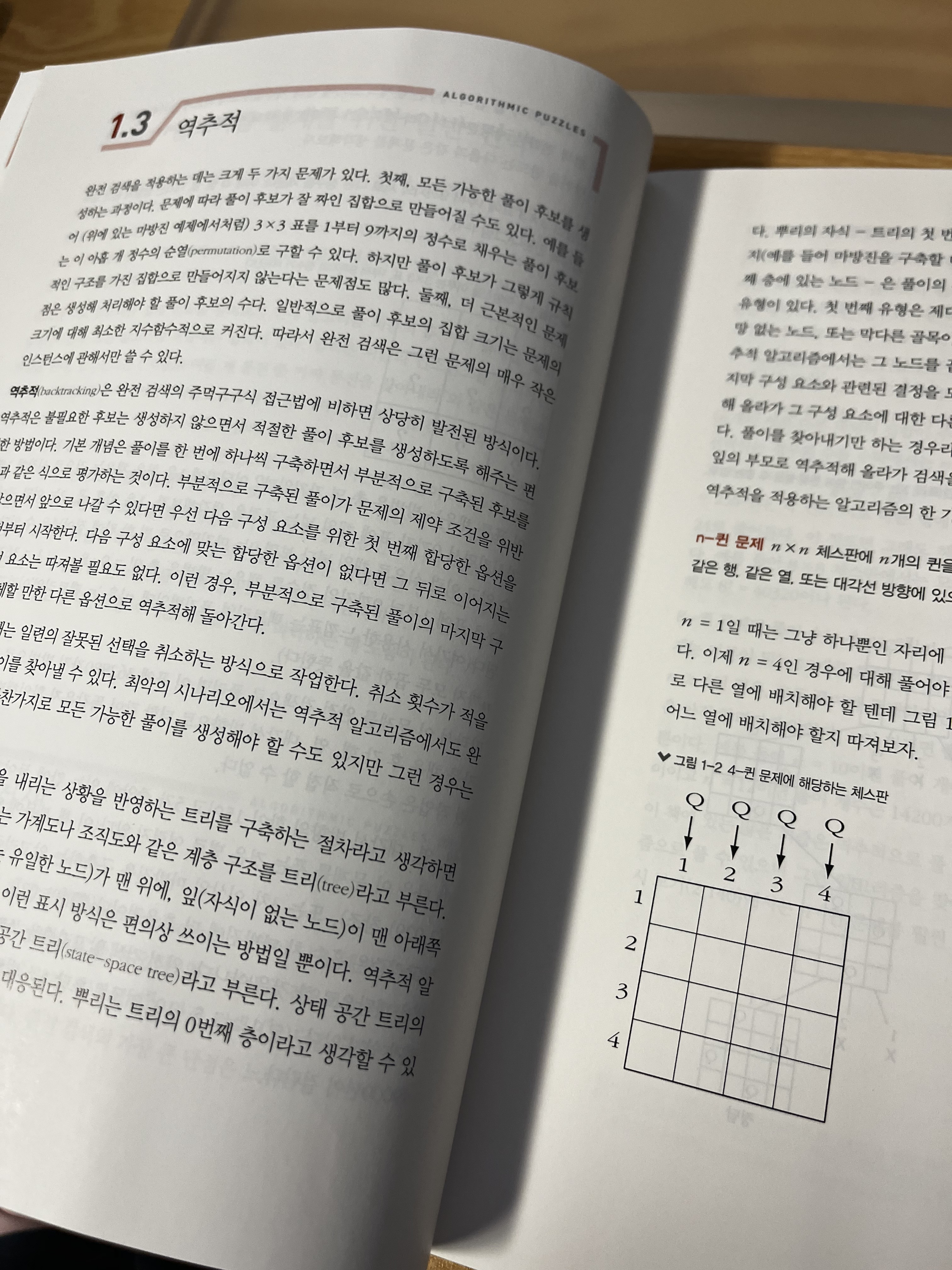 이 책에서는 체스판을 예시로 역추적 알고리즘에 대해 설명해줘서 깔끔하게 이해가 됐다.