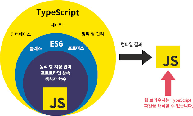 정적 타입의 컴파일 언어이며 코드 작성 시 타입을 체크해 오류를 확인하는 자바스크립트의 슈퍼셋