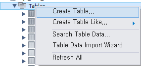 Table을 생성하고자 하는 Schema의 하위로 들어간 후 Create Table을 클릭