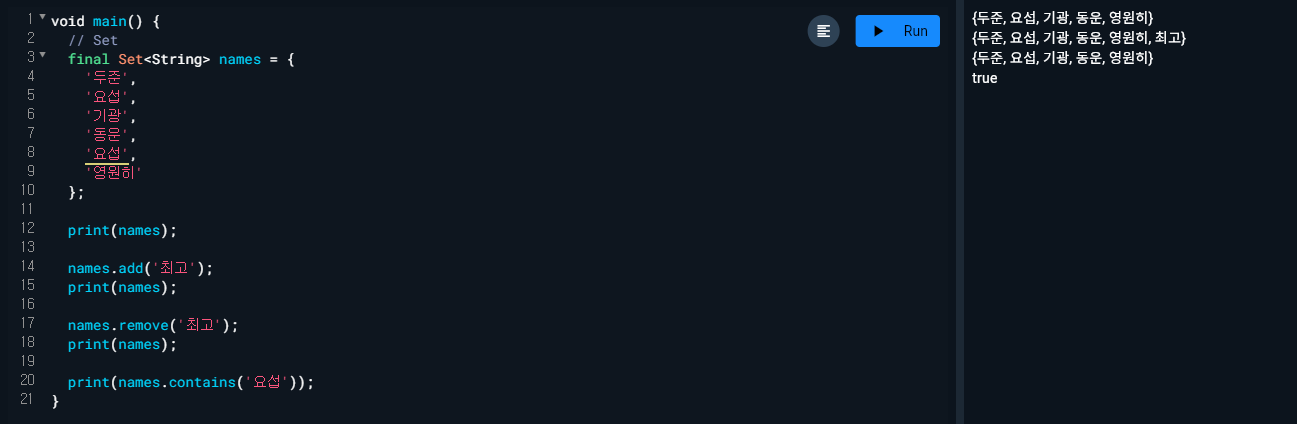 - 중복 값 가능