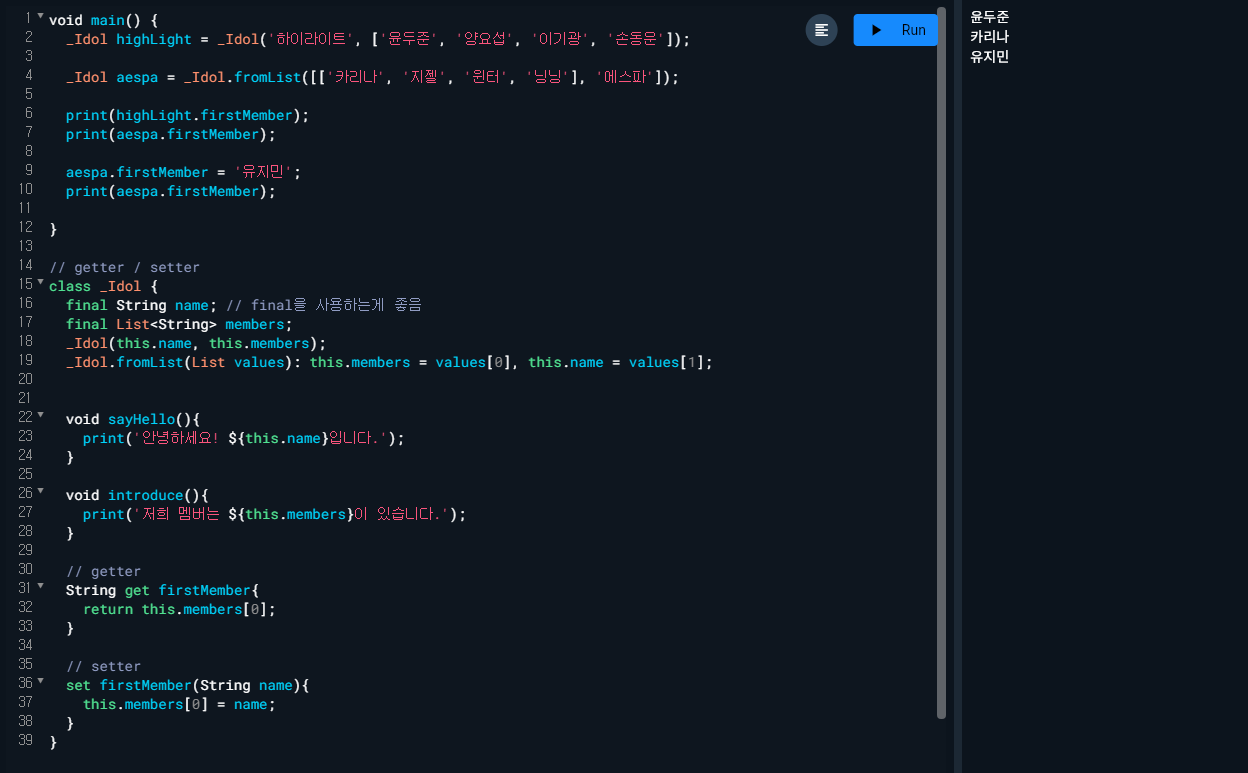 | [Dart] Dart 기본 문법 (0) | 2024.03.13 |
