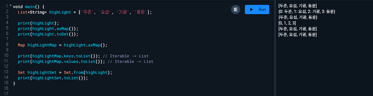 - Key 값만 List로 바꾸고, Value 값만 List로 바꾸기가 가능