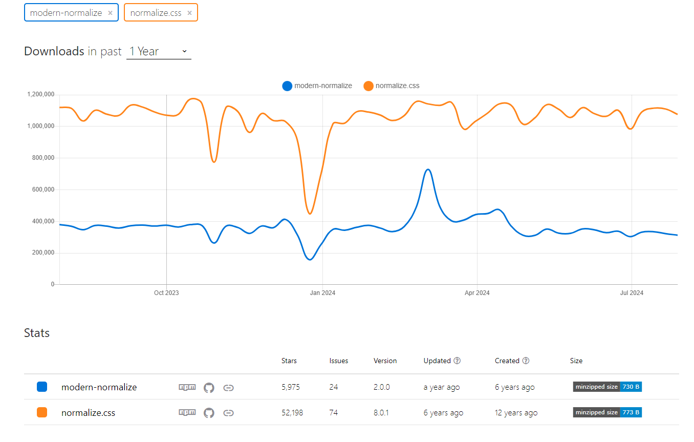 - 파일 크기 최적화 : modern-normalize는 normalize.css보다 파일 크기가 작고 간결합니다. 이는 웹페이지 로딩 속도에 유리합니다.